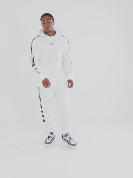 ONLY AT JD. עדכן את השכבות הנינוחות שלך עם קפוצ'ון מדבקות לגברים זה מבית adidas Originals, סווטשירט קפוצ'ון בהתאמה סטנדרטית זה עשוי מפולי פליס רך ממוחזר מכותנה לנוחות מתמשכת. הוא כובע קפוצ'ון המתכוונן עם שרוך לכיסוי נעים, וקצוות ריב נמתחים כדי לנעול את ההתאמה. עם כיס קנגורו מלפנים, 3 פסים אייקונים במורד השרוולים ו-Trefoil ייחודי על החזה. חתום עם ערימה של סמלי לוגו של adidas Originals בכל שרוול. ניתן לכביסה במכונה. | הדוגמן בגובה 180 ס"מ ולובש מידה M.