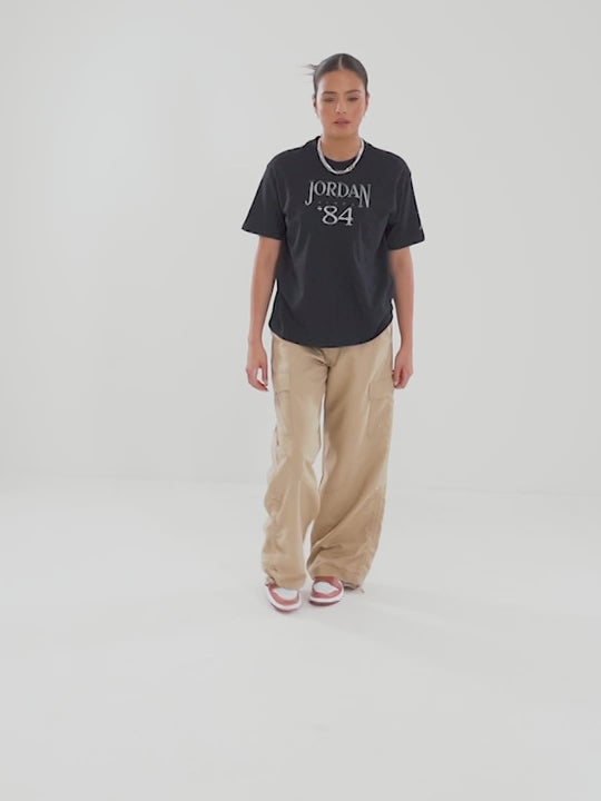 רענני את המראה הרחוב הקז'ואלי שלך עם חולצת טריקו לנשים מבית ג'ורדן. החולצה הזו מגיעה בגזרה רגילה ועשויה מבד כותנה רך כדי להביא לך נוחות מוחלטת. היא כוללת צווארון עגול עם כתפיים שמוטות ושרוולים קצרים לאווירה נינוחה. בסיומת עם סימן מילה ג'ורדן על החזה. ניתן לכביסה במכונה. הדוגמנית לובשת מידה S.