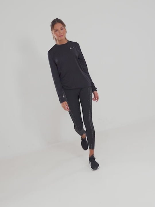 חולצת ריצה בייסיק מבד נושם בטכנולוגיית דריי פיט עם לוגו Swoosh בחזית ופתחי אגודלים להתאמה המושלמת שתשמור על הנוחות שלך בזמן הפעילות.