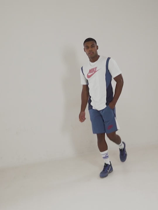 ONLY AT JD. לנוחות קלה ויומיומית, שים על עצמך את חולצת הטי שירט הזו של נייקי. החולצה בגזרה קלאסית, עשויה מבד כותנה רך עם פאנלים בצבעים מנוגדים. על חזית החולצה, הדפס שם ולוגו המותג. גובה הדוגמן 1.83, לובש מידה M.
