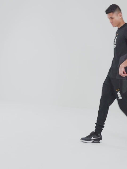 תחדש את הלוק היומיומי שלך עם מכנסי טרנינג לוגו מבית נייקי. מכנסיים מעוצבים וייחודיים. קלי משקל ומגיעים עם שכבות רכות לנוחות מירבית. למכנסיים רצועת מותניים אלסטית, גומי בסיומות ללוק אתלטי, כיסים בצדדים. לוגו המותג מופיע בחזית.